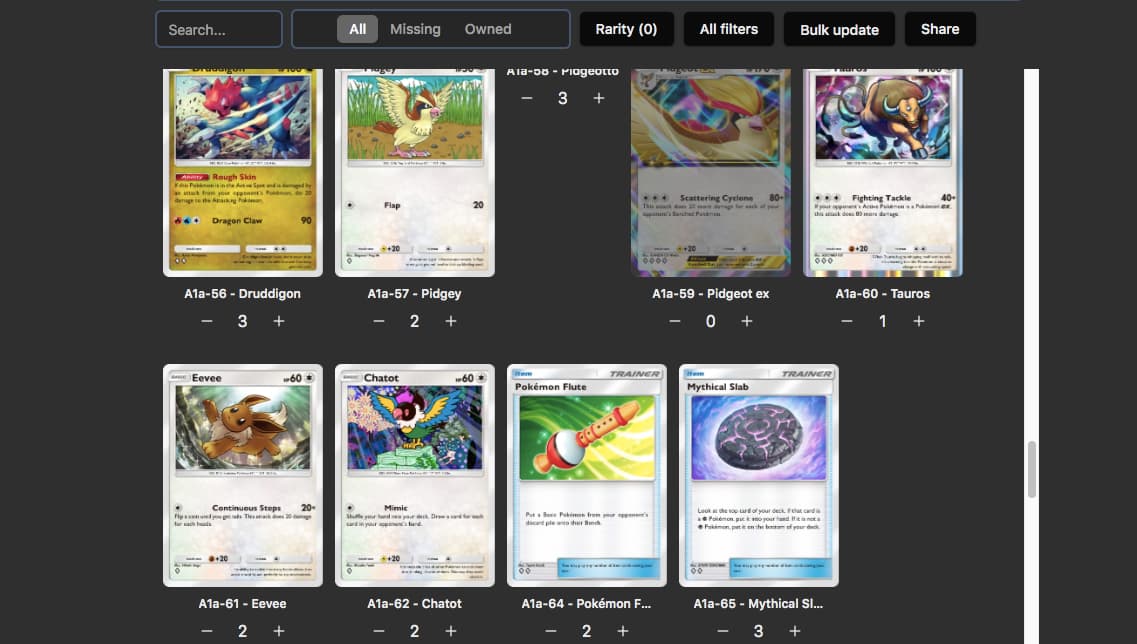 I’ve noticed that in Mythical Island (Set A1a) the card Old Amber (063) is missing in the collection tab. Is anyone else facing this issue?