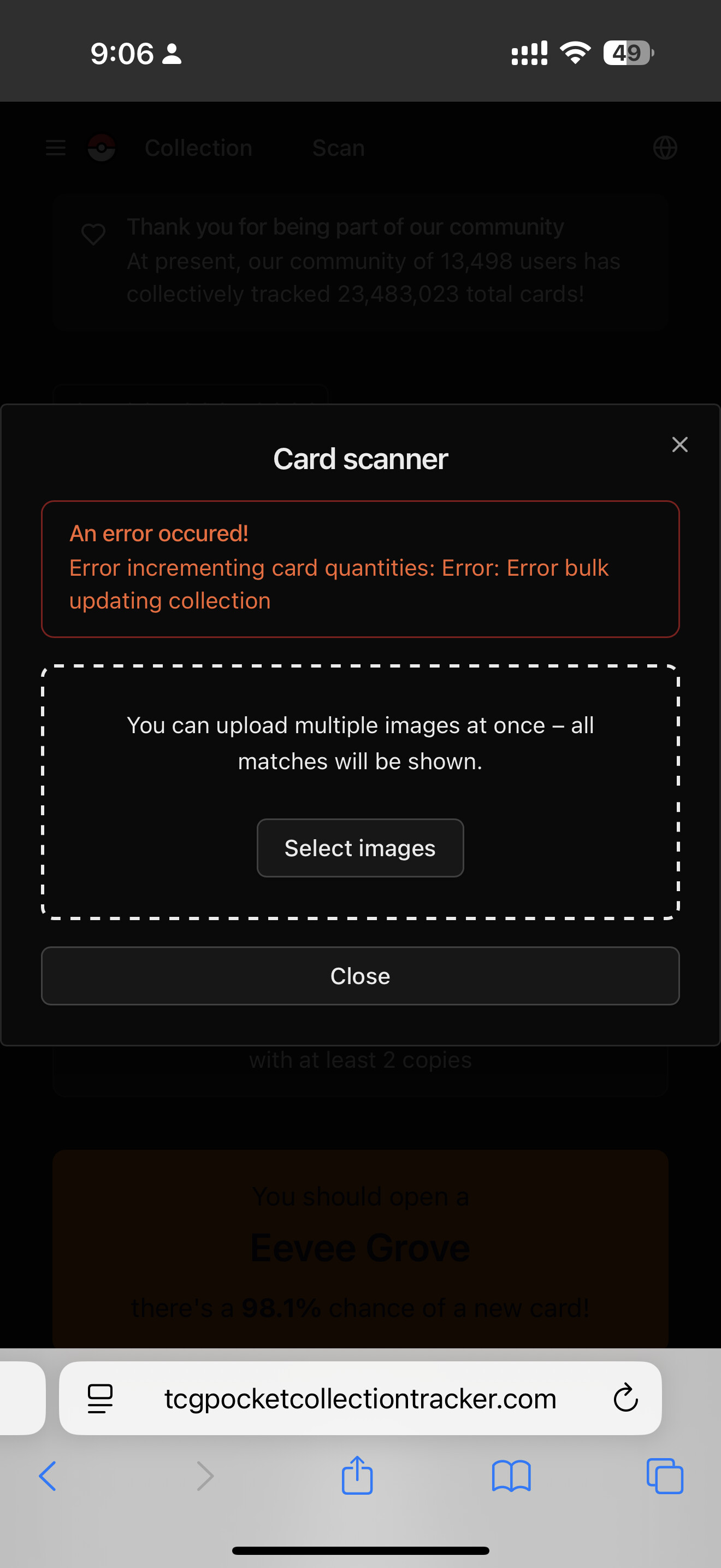 Just tested and single screenshots of single cards are working, but bulk images of more than 1 card wasn’t