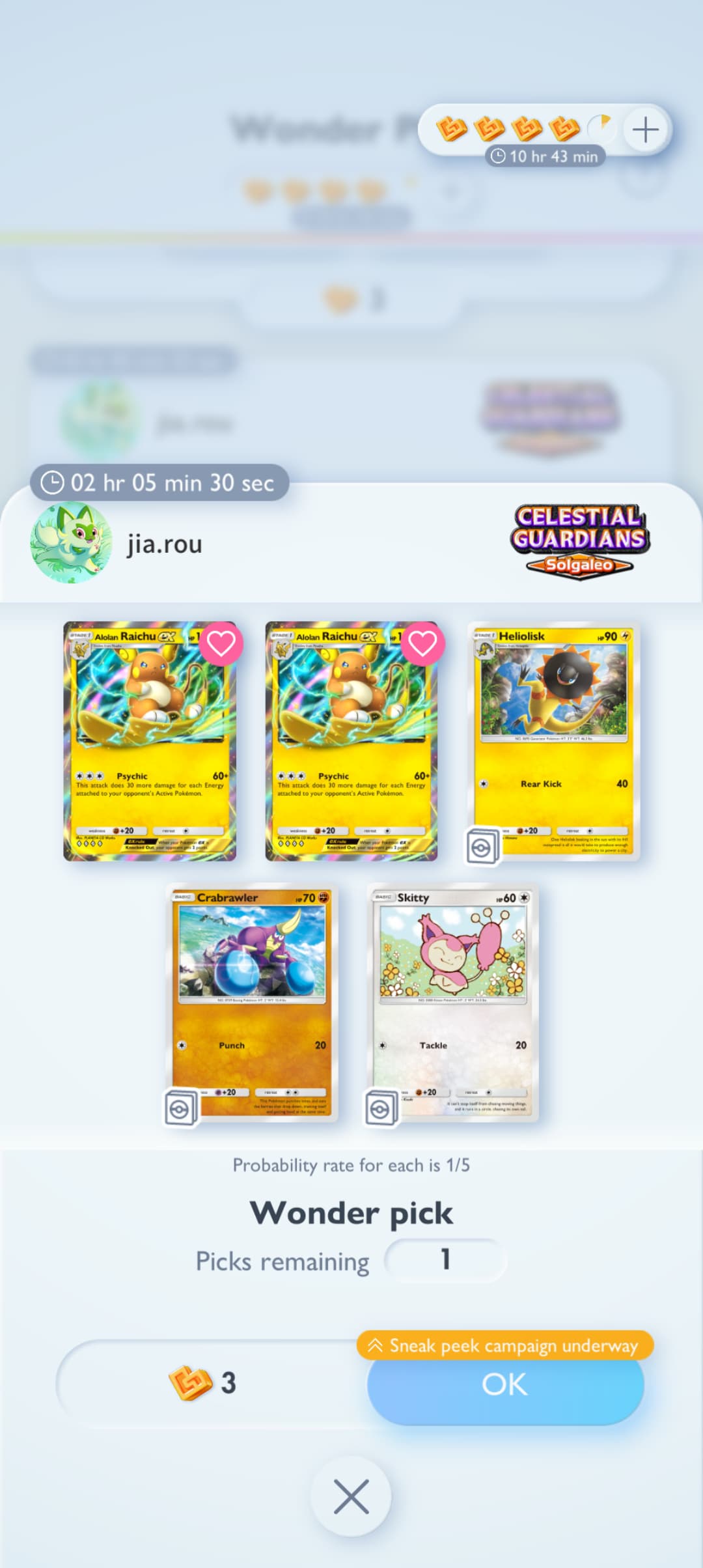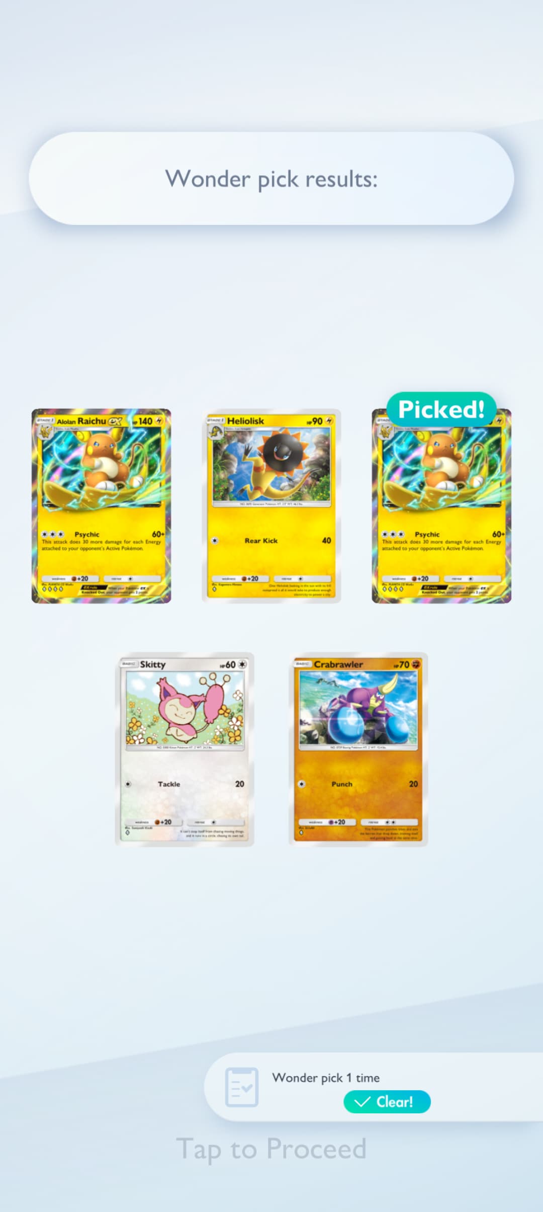 The other thing it assumes that the game knows which card I want from the pick. If the best card in the pack is an EX for example, and I sneak peak slot #1 which shows a lesser card, I still now have the option of selecting that card or not (let’s say it’s the only one I’m missing for example, or I want another copy for my decks).