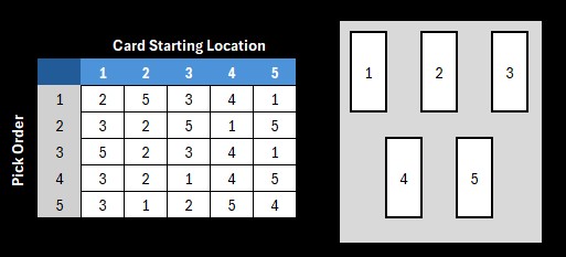 But the way the cards are displayed when the selection is done might have a pattern like this thread implies… it just doesn’t matter for the result.